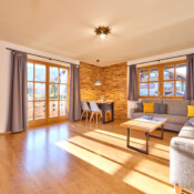 Perfekt als Feriendomizil für zwei ist die Wohnung Kreuzeck geeignet. Sie hat getrennte Wohn- und Schlafräume und gleich zwei Balkone, um die faszinierende Aussicht auf die Bergwelt zu genießen.